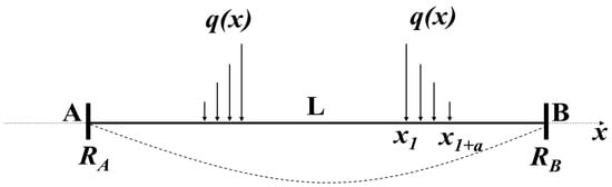 When the substrate is flat, the double-clamped beam is simplified into a stretched line to deduce the spring constant and the stretched line model is shown in Figure 2, where x1 to x1+a is the location of the right driving electrode and the q(x) is the load of the force. When the electrostatic force is generated by applying voltage to the driving electrodes, the spring constant k could be calculated by the superposition principle.