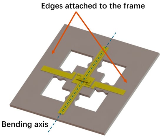 Many methods have been reported to reduce the packaging stress. In 2015, Schröder S et al. proposed a stress minimized method by double-sided wire bonding [24]. However, double-sided wire bonding is too complicated for mass production. In 2016, Yongcun Hao et al. presented a circular disk with eight L-shaped elastic beams to isolate the stress from out-of-plane deformation based on the silicon substrate, but this stress isolation structure cannot be directly migrated to substrates other than the SOI substrate [25]. In 2019, Bowen Xing et al. reported a single center anchor packaging stress isolation structure for Si-based MEMS devices [26]. Nevertheless, this structure was separated from the rigid substrate, which is detrimental to miniaturization and reliability. Few papers have focused on optimizing the bending stress for flexible devices, aiming at self-packaging, which is closely related to the performance of flexible devices.