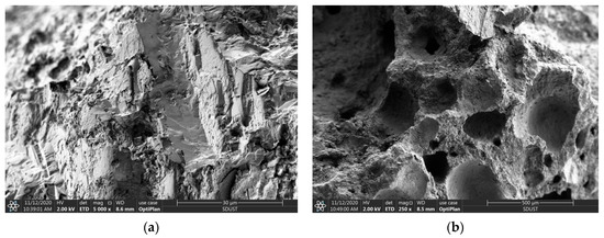 In addition, a vacuum control system, a signal detection and image display system, and an electronic optical system were utilized in conjunction, collectively comprising an Apreo S HiVac scanning electron microscope (Thermo Fisher Scientific, Shanghai, China) (SEM) system (Figure 6b) to analyze the microstructure of concrete and SVSAC. The dimensions of the specimens were consistently maintained at 5 mm × 5 mm × 2 mm.