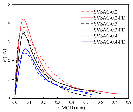 - A finite element model was developed to analyze the fracture behavior of SVSAC. The numerical results showed that the fracture toughness ( and ) was greatly improved through changing the size of the specimen, i.e., beam height, length, and width. The P-CMOD curves of SVSAC became steep after increasing the specimen height and width.