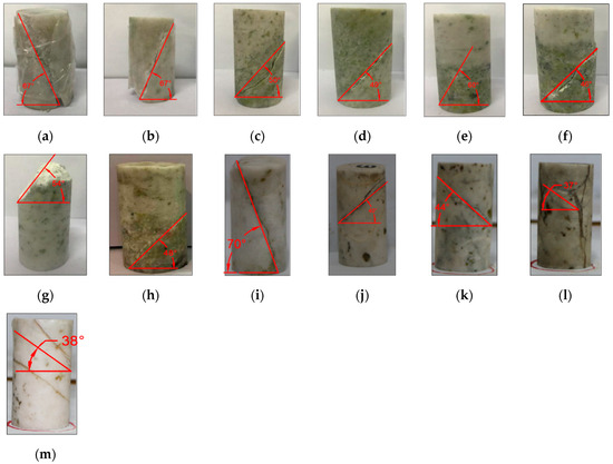 - Wen, J.; Tang, L.; Zhang, S.; Zhan, Q.; Wang, Y. Qualitative and quantitative investigations on the failure effect of critical fissures in rock specimens under plane strain compression. Materials 2023, 16, 611. [Google Scholar] [CrossRef] [PubMed]