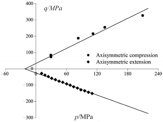 - Meyer, J.P.; Labuz, J.F. Linear failure criteria with three principal stresses. Int. J. Rock Mech. Min. Sci. 2013, 60, 180–187. [Google Scholar] [CrossRef]