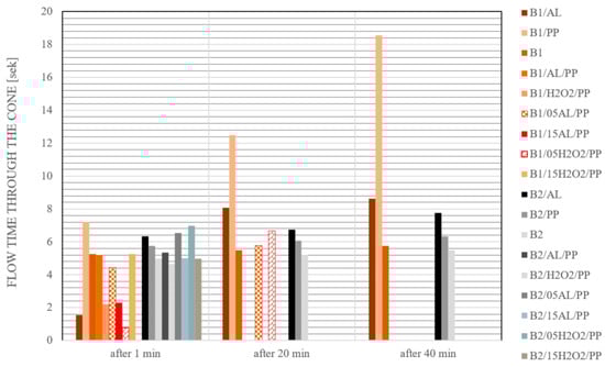Flow time of the tested mixtures through the Abrams cone.