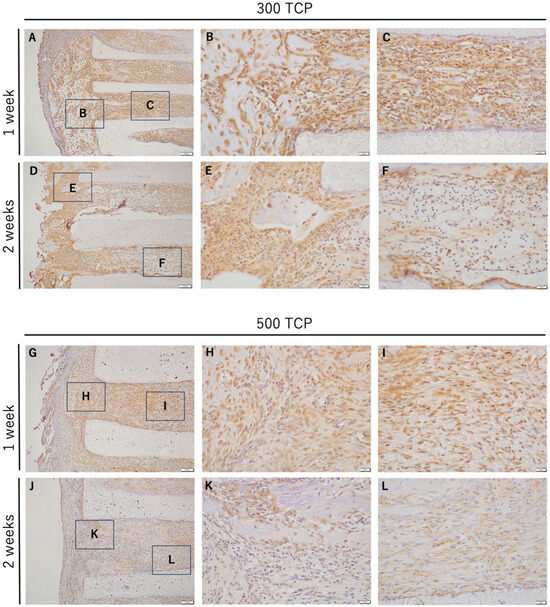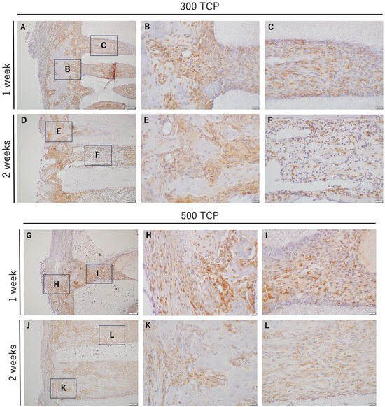 3.3. Immunohistochemistry Analysis of M1 Macrophages Induced by 300 TCP and 500 TCP
