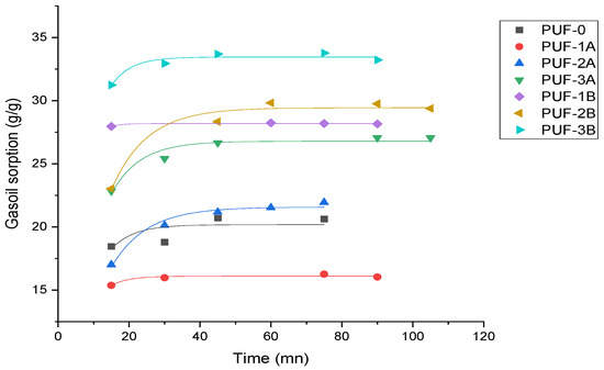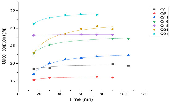 Figure 6 depicts the effect of time on gasoil adsorption capacity.