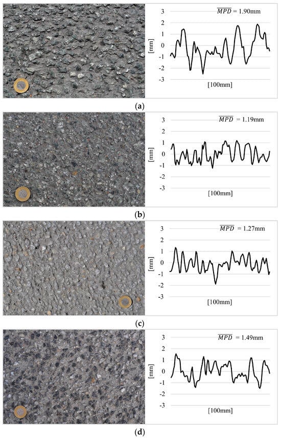 - Praticò, F.G.; Vaiana, R. A study on the relationship between Mean Texture Depth and Mean Profile Depth of asphalt pavements. Constr. Build. Mater. 2015, 101, 72–79. [Google Scholar] [CrossRef]