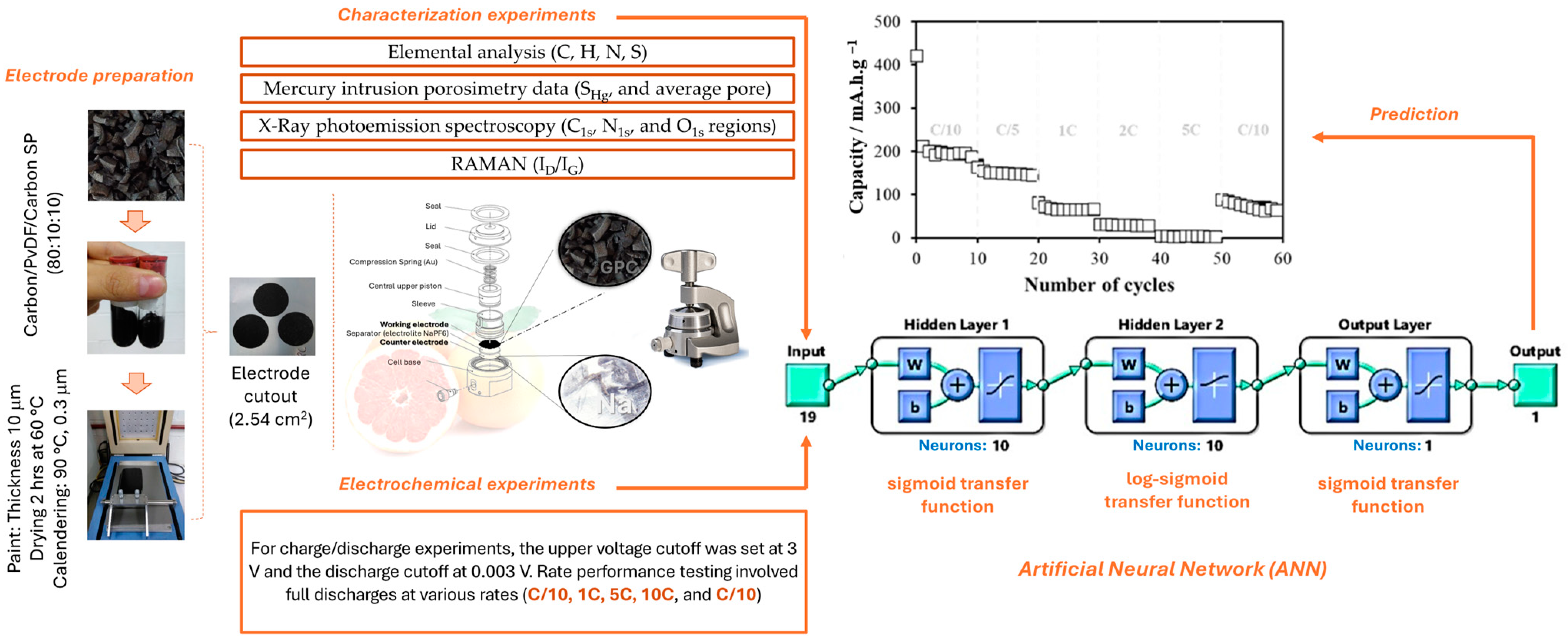 Warren-Vega, W.M.; Zárate-Guzmán, A.I.; Carrasco-Marín, F.; Ramos-Sánchez, G.; Romero-Cano, L.A. Predicting Sodium-Ion Battery Performance through Surface Chemistry Analysis and Textural Properties of Functionalized Hard Carbons Using AI. Materials 2024, 17, 4193. https://doi.org/10.3390/ma17174193