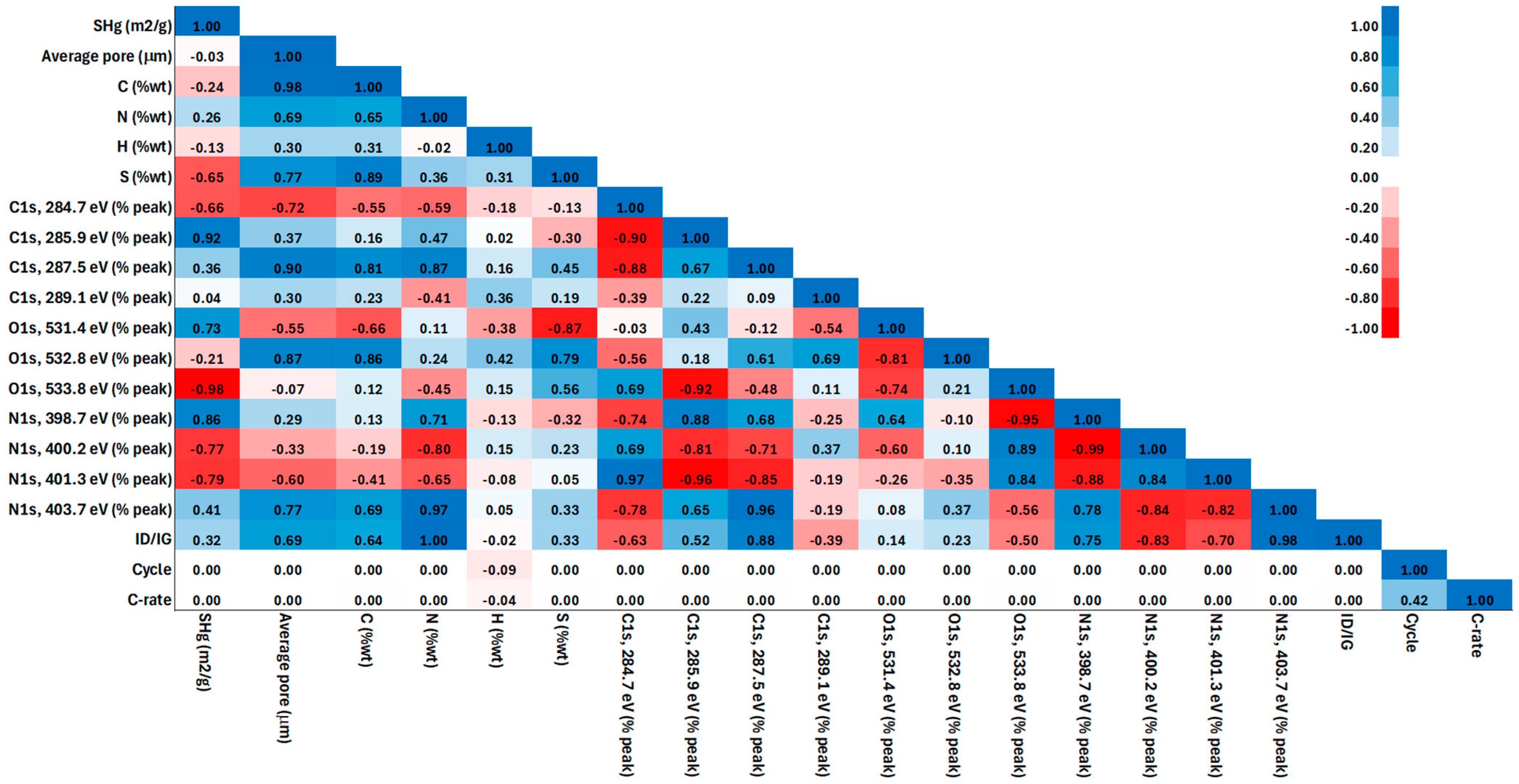 3.1. Physical-Chemical Characterization of Hard Carbons and Development of ANN Algorithm