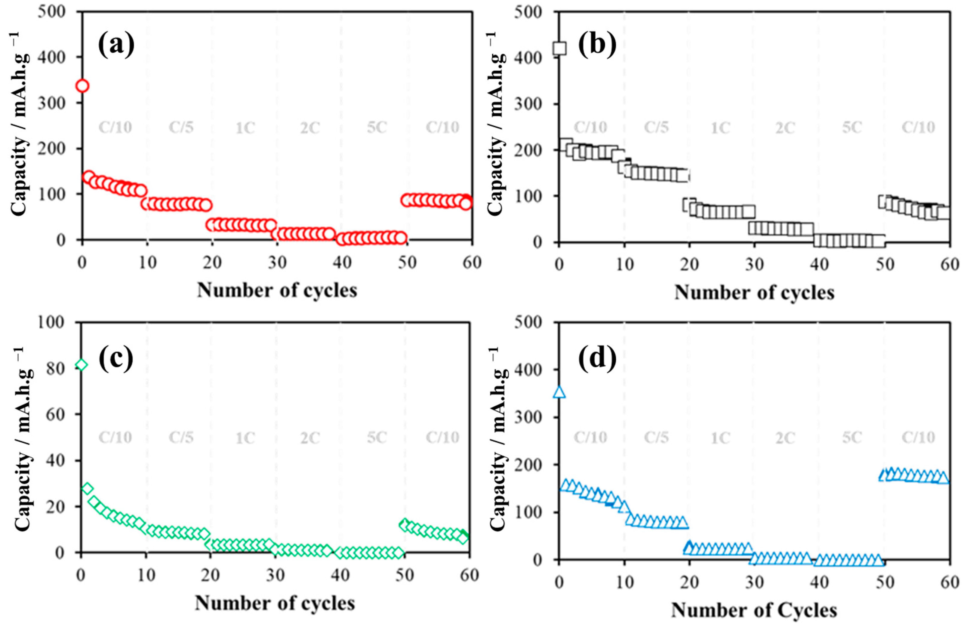 - Romero-Cano, L.A.; García-Rosero, H.; Carrasco-Marín, F.; Pérez-Cadenas, A.F.; González-Gutiérrez, L.V.; Zárate-Guzmán, A.I.; Ramos-Sánchez, G. Surface Functionalization to Abate the Irreversible Capacity of Hard Carbons Derived from Grapefruit Peels for Sodium-Ion Batteries. Electrochim. Acta 2019, 326, 134973. [Google Scholar] [CrossRef]