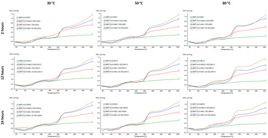 DSC curves of MMT–NS conjugates and the MMT + H2O reference sample were obtained under various conditions.