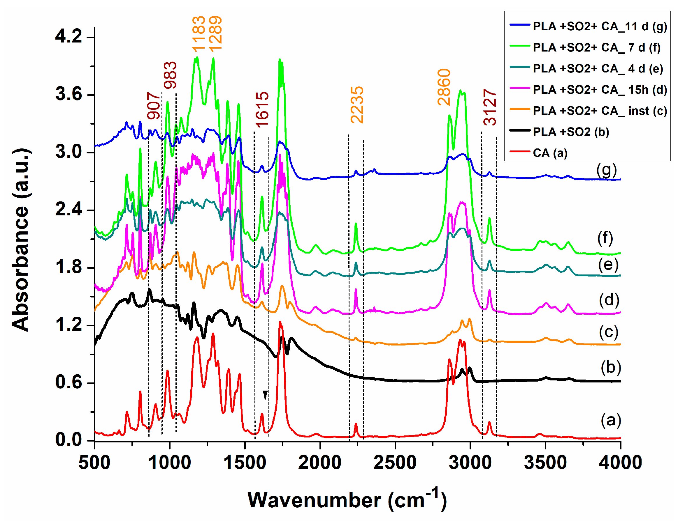 - Sinclair, R.G.; McKay, A.F.; Jones, R.N. The Infrared Absorption Spectra of Saturated Fatty Acids and Esters. J. Am. Chem. Soc. 1952, 74, 2570–2575. [Google Scholar] [CrossRef]