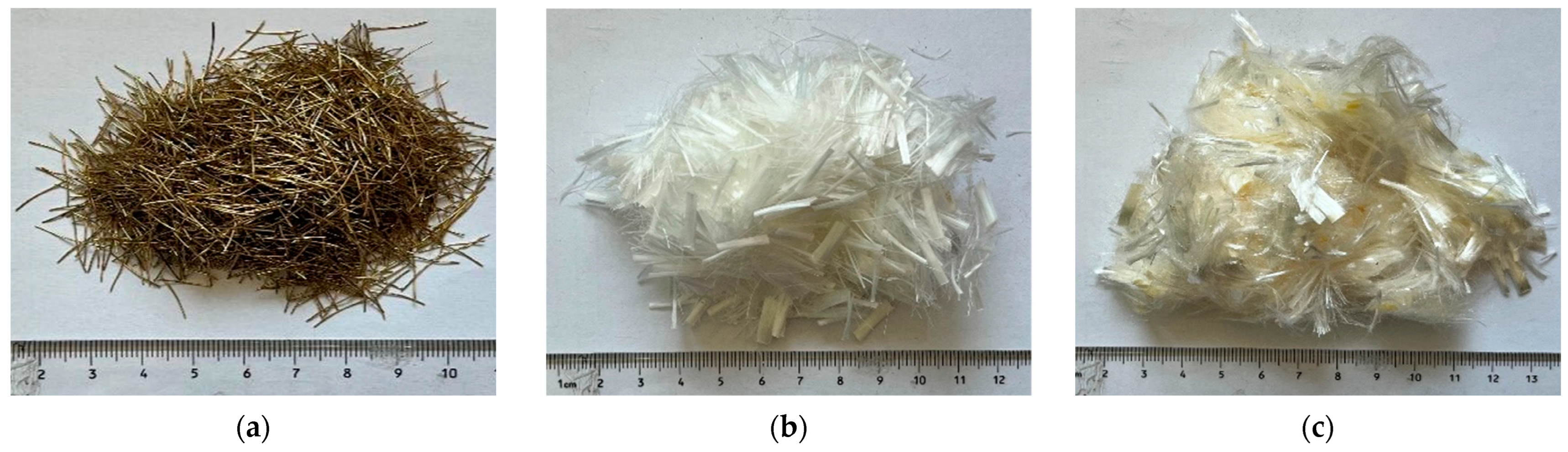- Qian, C.X.; Stroeven, P. Development of hybrid polypropylene-steel fibre-reinforced concrete. Cem. Concr. Res. 2000, 30, 63–69. [Google Scholar] [CrossRef]
