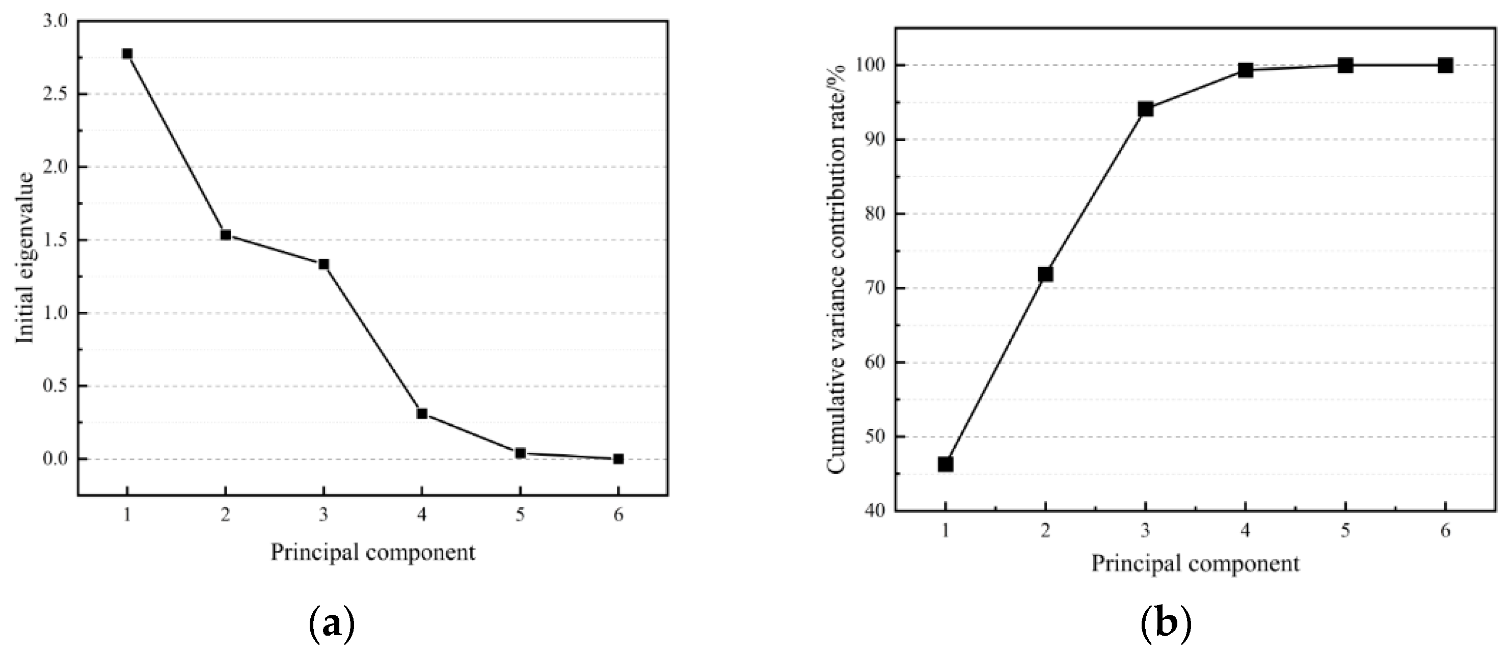4.2.3. Analysis of Principal Component Eigenvalue and Variance Contribution Rate of HFRCC Performance Model