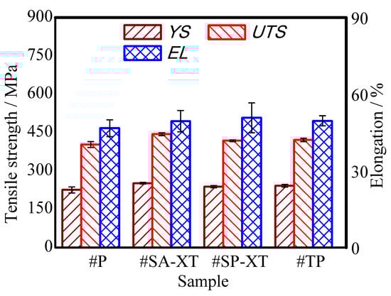 | Yield strength YS (MPa) | #SA-XT | 249.58 ± 3.8 | 250.04 ± 3.6 | 256.42 ± 5.8 | 252.01 ± 3.1 |