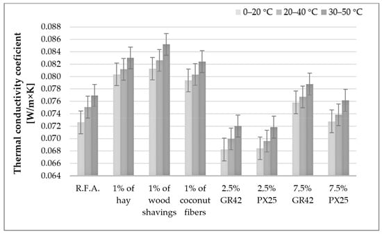 Thermal conductivity of samples with the addition of natural fibers and phase-change materials.