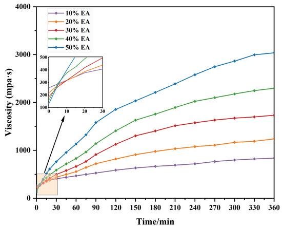 3.2.2. Study EA’s Curing Process of Viscosity