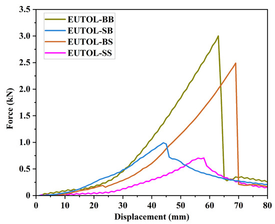 Relationship curve between displacement and load of different ETOULs.