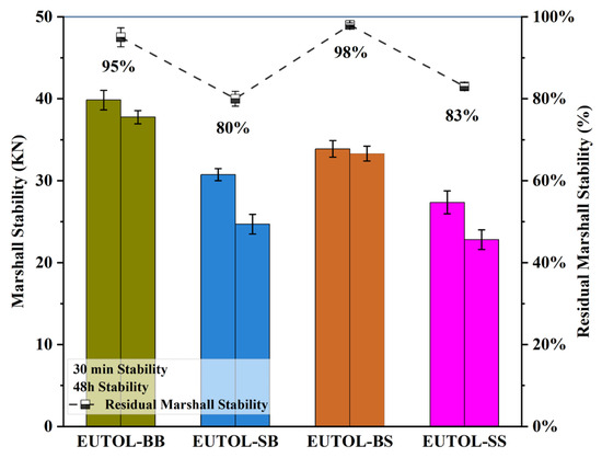 The Marshall strength and residual stability ratio of different ETOULs.