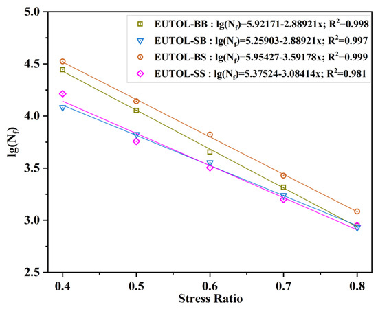 Relationship between fatigue life and stress level of different EUTOLs.