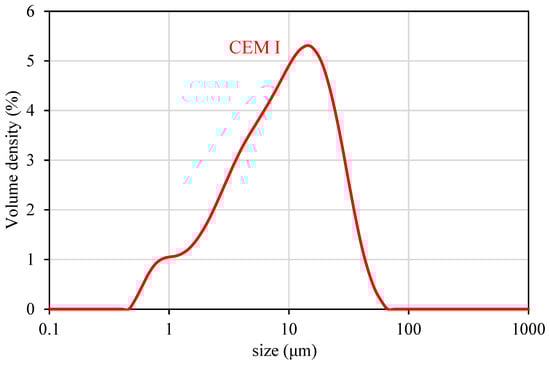 The printing mix was a mortar previously developed to provide adequate properties for printing, consisting of Type I Portland cement, microsilica, clay, and siliceous sand (see Table 1). CEM I Portland cement of 52.5 MPa strength grade was used. The mineralogical compositions and particle size distribution of CEM I are presented in Table 2 and Figure 3.