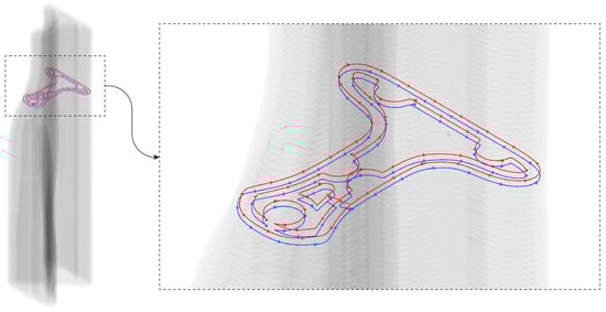 The integration of these components into a unified digital blueprint for production was demonstrated and validated for the case of a post-tensioned beam printed as two symmetrical components with the general geometry outlined in Figure 2. The beam was designed and fabricated to verify the holistic approach. The beam was printed using the materials and tools developed in this study, and the dimensional accuracy of its manufacturing was evaluated.