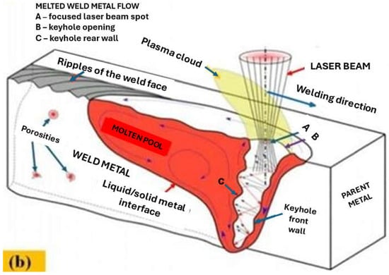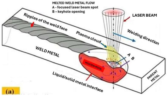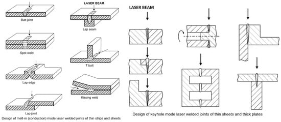 Laser beam welding (LBW) processes, which are powered by a single laser radiation generator feature, have not yet been fully used, given their great industrial potential, compared to conventional arc welding processes. In particular, their advantages include their high quality and welding efficiency; their ease of automation and especially robotization; production flexibility, namely the ability to simultaneously weld and perform surfacing, melting, heat treatment, or cutting; the high melting depths of laser-welded butt joints and a very narrow Heat-Affected Zone (HAZ); low deformation; and almost zero residual stress [1,2,3,4,5,6,7,8,9].