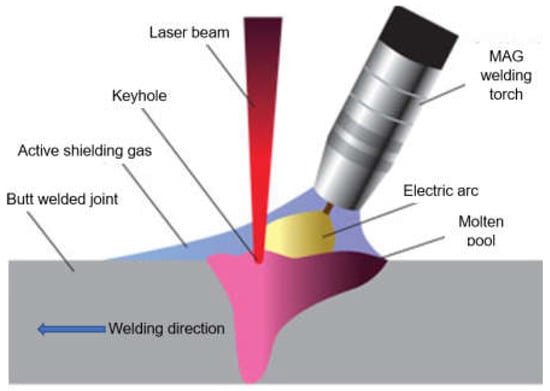A view of the two techniques of the ultra-high-power LHW process: (a) laser beam leading mode, (b) MAG arc leading mode [1,18].