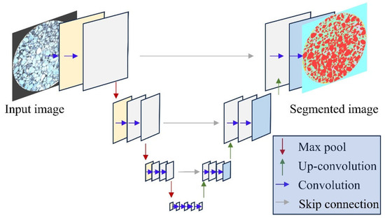 Using U-Net-based deep learning for semantic image segmentation, different components were segmented into several classes, and relevant void features were extracted. U-Net is a convolutional neural network (CNN) designed for semantic segmentation. The initial convolutional layer sequence in U-Net, combined with the maximum pooling layer, performs down-sampling, progressively reducing the resolution of the input image. These layers are followed by a series of transposed convolutional layers that use up-sampling operators to continuously increase the image resolution.
