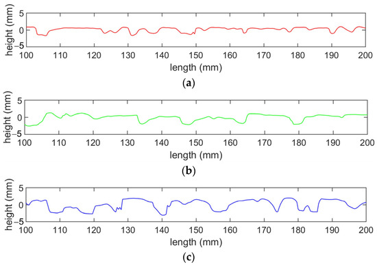 Profiles extracted from different OGFC specimens, (a) OGFC-10, (b) OGFC-13, (c) OGFC-16.