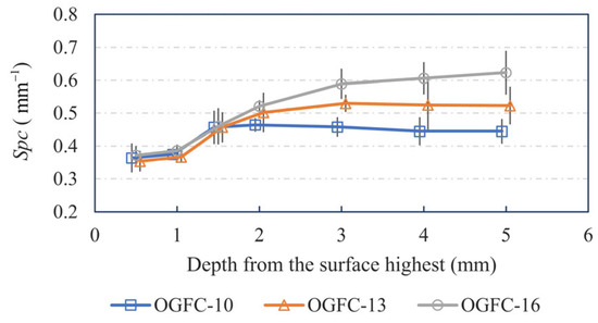 Distribution of the Spc of OGFC specimens over the depth.