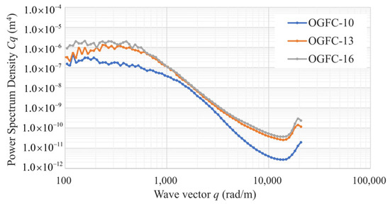 Power spectrum density of the OGFC-10, OGFC-13, OGFC-16 specimens.