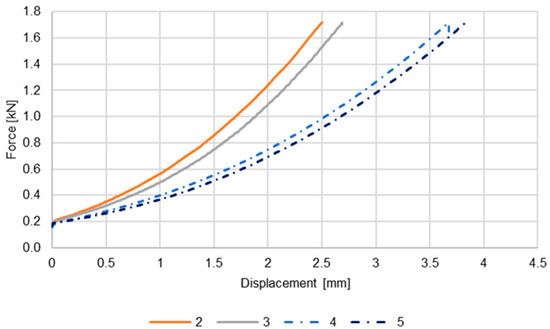 The press-on was carried out according to the test plan in Table 2. Figure 5 shows the force–displacement curves for these samples.