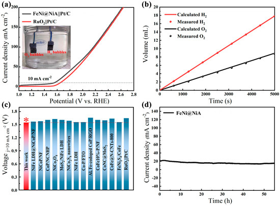 - Li, C.; Sun, F.; Qin, X.; Yang, K.; Wu, W. A general strategy for Ni0–NiOOH hybrid catalyst of high hydrogen evolution activity. Int. J. Hydrogen Energy 2024, 68, 491–498. [Google Scholar] [CrossRef]