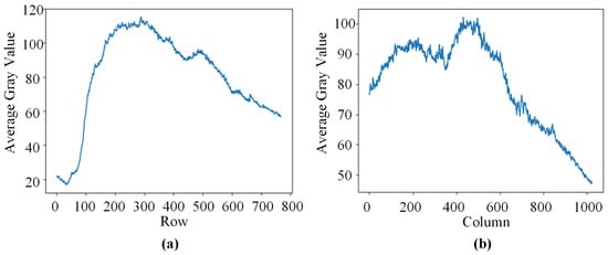 Average grayscale histogram. (a) The average gray value of each row. (b) The average gray value of each column.