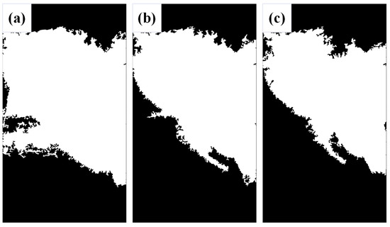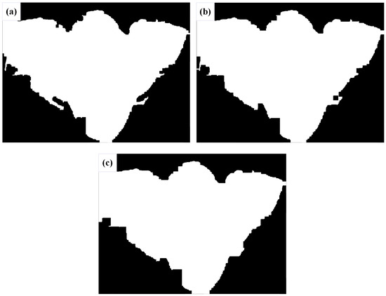 The morphological images with different thresholds: (a) (15, 15), (b) (25, 25), and (c) (35, 35).