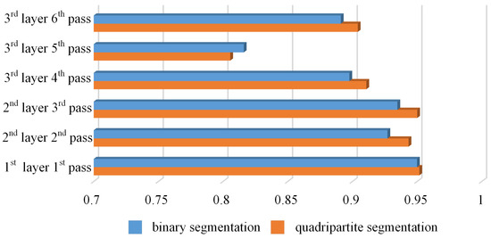 The relative errors of the multi-layer multi-pass images after the quadripartite segmentation process.