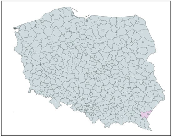 In Poland, the only open-pit diatomite mine is located in Jawornik Ruski, in the Przemyśl district of Podkarpackie voivodeship. Figure 2 shows the location of the mine. The diatomite deposit was discovered in 1975, an experimental mining project was developed in 1976, and the mine was established in 1977 [,]. Since 1992, the diatomite deposit has been exploited by the only domestic producer of diatomite raw materials—the Specialized Mining Company GÓRTECH Ltd. []. The diatomite ore mined and processed at the mine site is processed mainly into sorbent, which is a means of removing oil spills [,,]. Diatomite from Jawornik Ruski has an oil-derived substance absorption capacity of 100% by weight in the raw state [].
