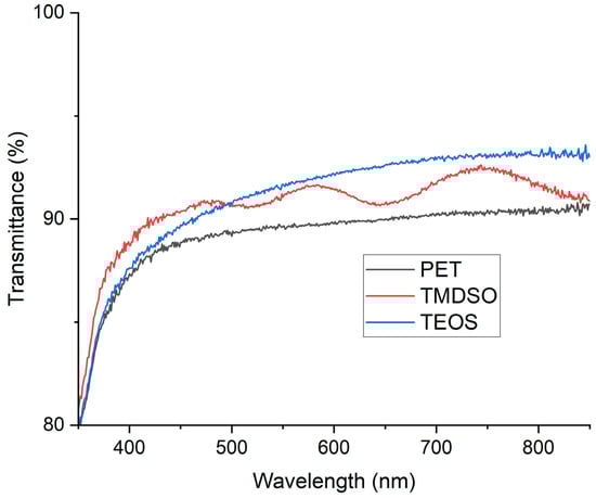 - Morent, R.; De Geyter, N.; Van Vlierberghe, S.; Dubruel, P.; Leys, C.; Gengembre, L.; Schacht, E.; Payen, E. Deposition of HMDSO-based coatings on PET substrates using an atmospheric pressure dielectric barrier discharge. Prog. Org. Coat. 2009, 64, 304–410. [Google Scholar] [CrossRef]