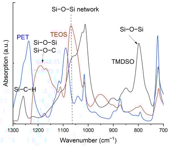 - Kim, M.T. Deposition behavior of hexamethydisiloxane films based on the FTIR analysis of Si–O–Si and Si–CH bonds. Thin Solid Film. 1997, 311, 157–163. [Google Scholar] [CrossRef]