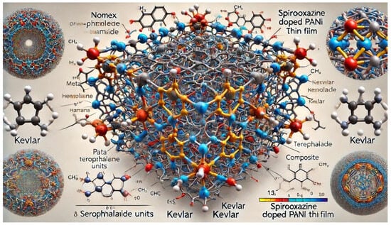 Design Concept: The composite is designed with interwoven or layered Nomex and Kevlar polymer chains. The Spirooxazine-Doped PANI thin film is deposited onto the network composite material made up of Nomex and Kevlar.