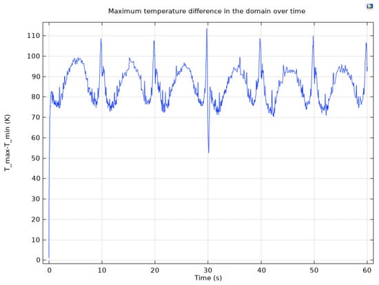 In Figure 10, probe plots display the maximum, minimum, and average temperatures of the designed composite material, offering valuable insights into its thermal behavior. Figure 11 further enhances our understanding by showcasing the temperature difference between the maximum and minimum temperatures, elucidating temperature differentials across the material.