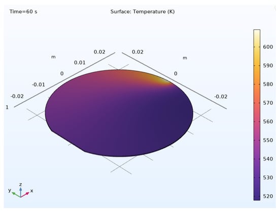 Meshing employs a triangular swept mesh with a single thin element through the thickness, and the solver’s relative tolerance is slightly reduced to capture the effect of the moving heat load. While a finer mesh and tighter solver tolerances could enhance peak temperature predictions, average and minimum temperature predictions would remain largely unaffected.