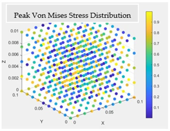 (1) Results for the Mechanical Investigation: Figure 14 illustrates the von Mises peak stress distribution in a graphical format. When comparing these results to those obtained from materials designed and modeled at the polymer level, it is evident that the composite material, comprising Nomex, Kevlar, and Spirooxazine-Doped PANI, designed and modeled at the atomic and molecular levels, exhibits superior high-strength properties for use in asteroid mining.