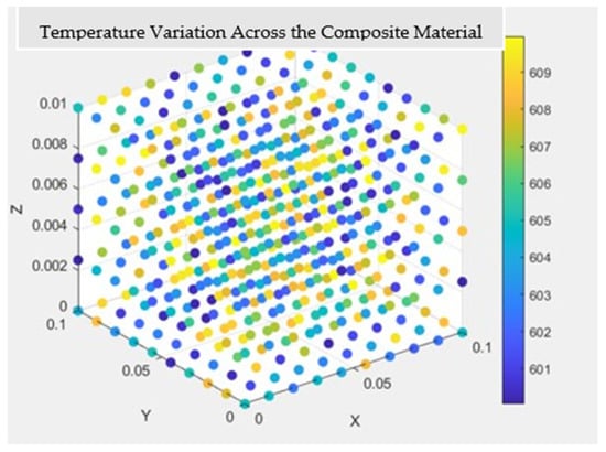 The temperature distribution throughout the composite material is visually represented in Figure 12 and Figure 13, providing a holistic view of thermal gradients and variations across its surface. These graphical representations offer valuable insights into the thermal performance and behavior of the composite material, aiding in its optimization and further development for various applications.
