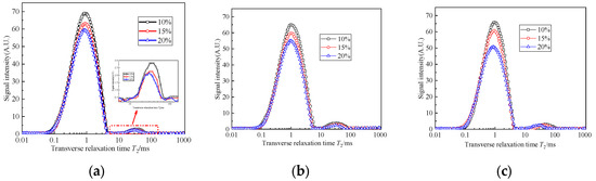 Transverse relaxation time T2 spectrum distribution of group A: (a) 7 d; (b) 14 d; (c) 28 d.