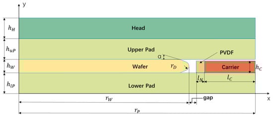 This paper focuses on the effects of material and structural changes on the wafer’s stress during the polishing process, providing a mechanistic explanation for the edge roll-off phenomenon. To minimize the coupling effects of excessive variables, assumptions and settings are made to simplify the boundary conditions. The boundary conditions for the finite element model developed in this paper can be described as follows: