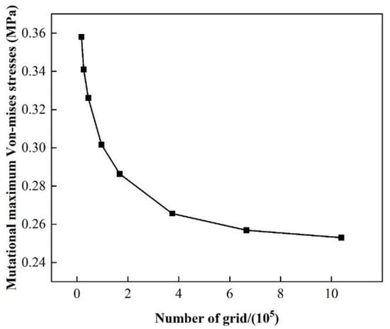 In the finite element simulation, the number of grids has a large impact on the simulation accuracy; thus, the grid independence verification is necessary. This paper focuses on the stress on the silicon wafer itself, so the grid independence is verified based on the maximum von Mises stress on the upper surface of the wafer.