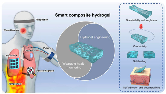 - Li, J.; Ding, Q.; Wang, H.; Wu, Z.; Gui, X.; Li, C.; Hu, N.; Tao, K.; Wu, J. Engineering Smart Composite Hydrogels for Wearable Disease Monitoring. Nano-Micro Lett. 2023, 15, 105. [Google Scholar] [CrossRef] [PubMed]