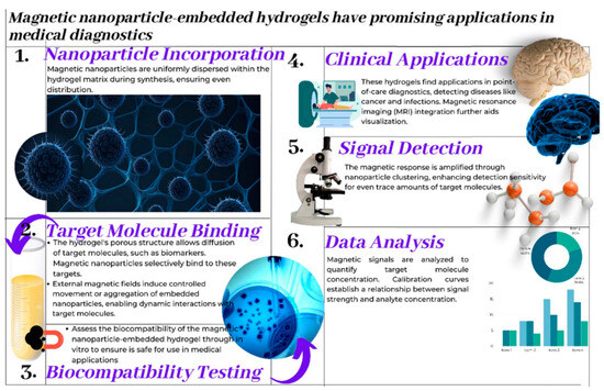 Hydrogels have emerged as crucial components in the development of biosensors due to their ability to respond to various biological and chemical stimuli. Their high water content and porous structure allow for the diffusion of analytes, making them suitable for detecting a wide range of biomolecules [11,12]. Hydrogels can be functionalized with specific recognition elements, such as enzymes, antibodies, or nucleic acids, enabling them to selectively bind to target molecules and produce a detectable signal.
