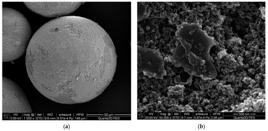 Porous microspheres of the TMSPM cross-linked with TRIM were obtained via heterogenous radical copolymerization. In their synthesis, a modified suspension technique was applied. The typically used high molecular mass stabilizer was replaced by a surfactant (AOT). As the concentration of the surfactant in the water medium exceeded its critical micelle concentration, it was present in the form of micelles. The polymerization process took place in the micelles. Thanks to this, copolymeric microspheres in the diameter range of 10–180 µm were obtained (Figure 2).